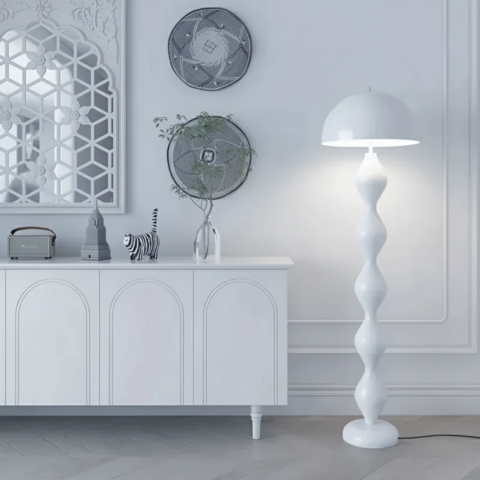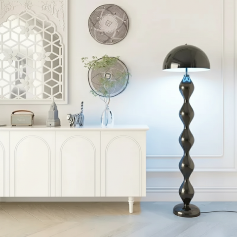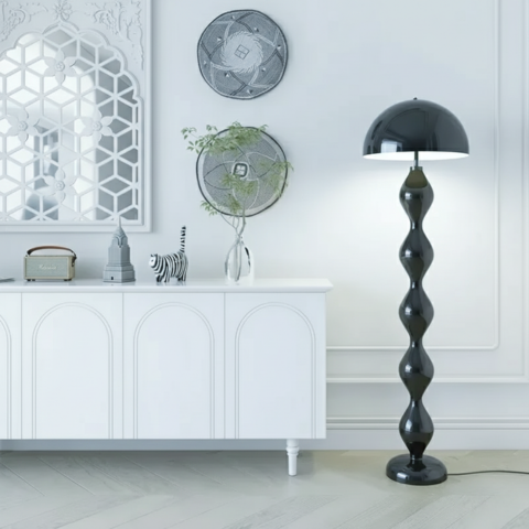 Ez a hullámos állólámpa szoborszerű alakjával és harmonikus íveivel vonzza a tekintetet. Lágy fénye megnyugtató légkört áraszt, ideális nappaliba, hálószobába vagy olvasósarokba. Merész formatervezése művészi és kortárs hangulatot kölcsönöz minden modern belső térnek.
